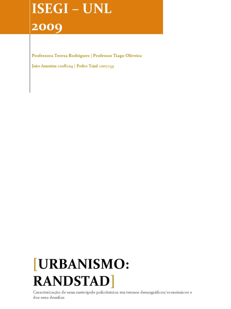 1. O que é o Randstad?..................................................................................................... 5 1.1. 1.2. 1.3. 2. Demografia e geografia de uma metrópole policêntrica ....................................... 5 O Randstad: um conceito que não passa do papel? .............................................. 8 O Randstad: as visões humana e empresarial ....................................................... 9