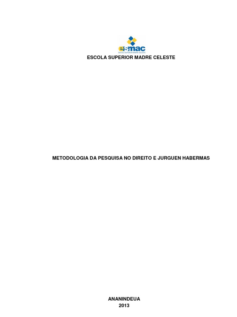 Trabalho apresentado Escola Superior Madre celeste como quesito avaliativo para a disciplina Mtodos e Tcnicas de Pesquisa ministrada pelo Professor Doutor Kleber Feio.