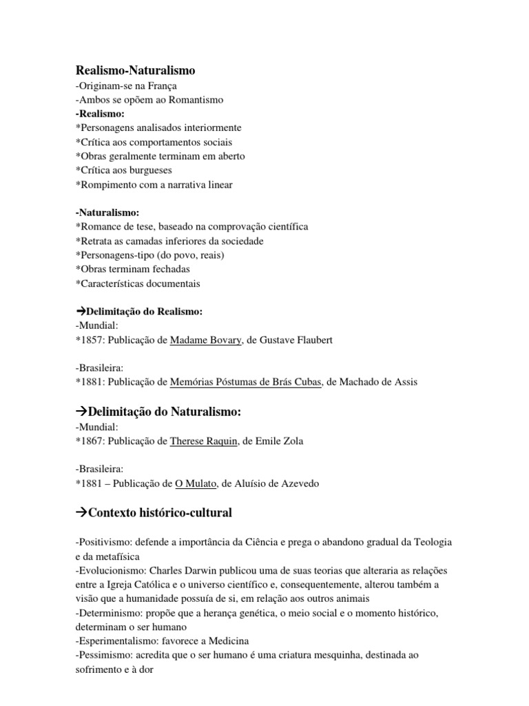 Características do Realismo-Naturalismo:
