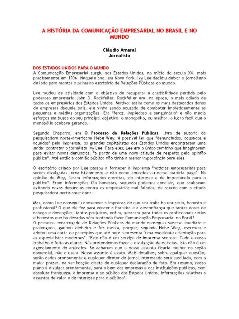 A HISTÓRIA DA COMUNICAÇÃO EMPRESARIAL NO BRASIL E NO MUNDO