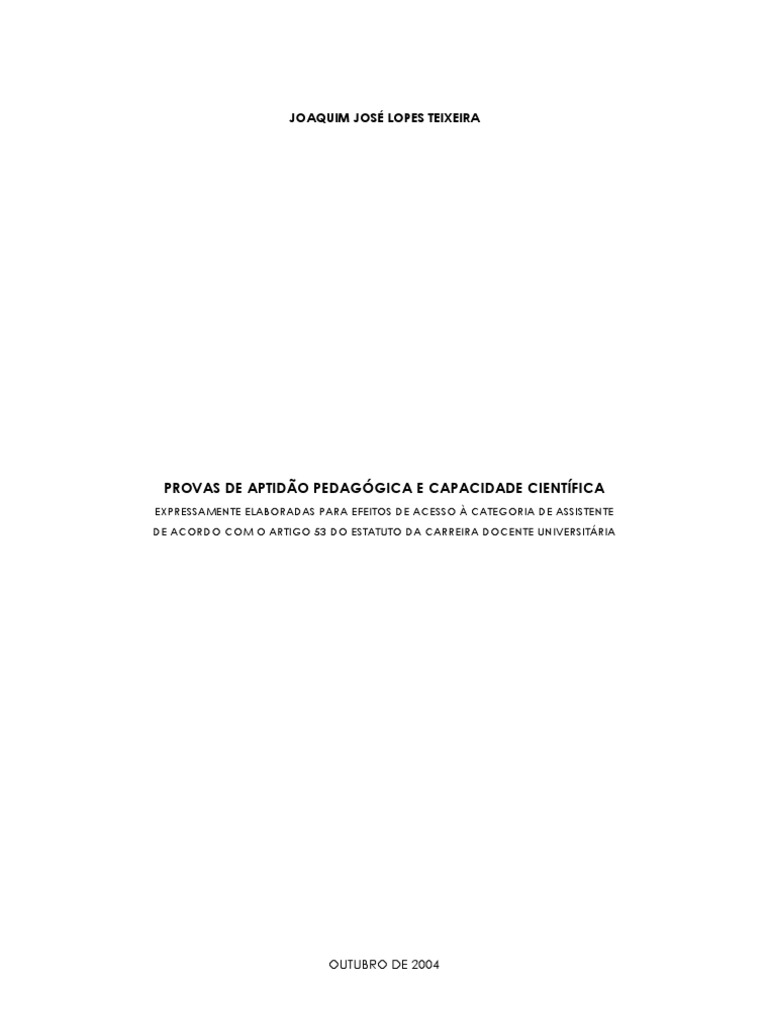 ELABORADO DE ACORDO COM O DISPOSTO NA ALÍNEA b) DO N.º 2 DO ART. 58 DO ESTATUTO DA CARREI RA DOCENTE UNI VERSI TÁRI A, NO ÂM BI TO DA PRESTAÇÃO DE PROVAS DE APTIDÃO PEDAGÓGICA E CAPACIDADE CIENTÍFICA