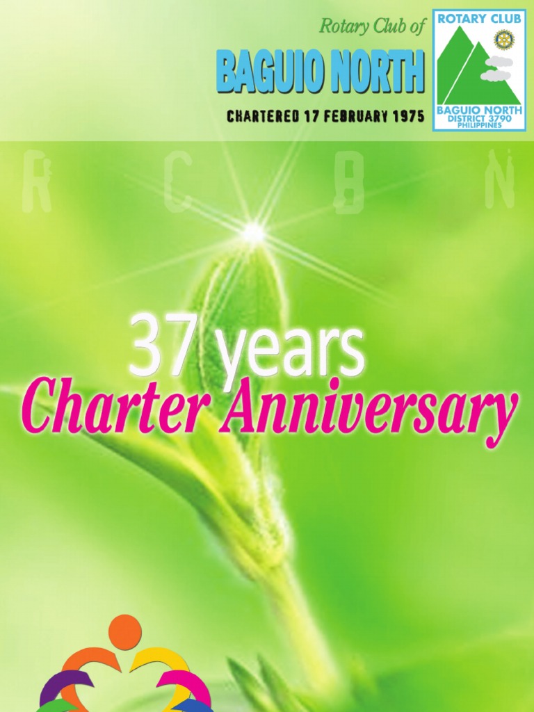 1975. . Palawan. Rotarians believe they can lessen these ills. ripples of hope. To this day the words of DG Ruben Roxas echo throughthe years. for setting out to improve the lot of others and thus sending forth once again.” When it all began. Jaydee Dimalanta (Dimalanta Corporation). He was congratulating the charter members “ for standing up on an ideal. later City Administrator). RC Baguio North was then only the second Rotary Club in Baguio. later City Prosecutor). Mindoro. Nanding Hamada (Baguio Architectural Center) Danny Lagasca ( Radiowealth). Lut Lao and Mark Go of our club and Digna Ragasa. That’s a long way and a high point since February 17. about 40 young professionals and businessmen were already meeting as regularly as provisional club. from Bataan to Ilocos Norte. himself a distinguished Rotarian. later assistant to President Ramos). later UB President) Herr Bautista (Black & White Printing. Guest of Honor and Keynote Speaker was Senate President Gil Puyat. then the City Secretary. the first lady governor of our district. Johnny Blanco (BIR). Marinduque and Catanduanes. There are now 8 clubs in our cluster. 1974. 3790. Momoy Battalones (MetroBank). Iking Cariño (Benguet Provincial Attorney). Henry McGee ( Brent School). Wency Andanar ( Pines Hotel. later DILG Undersecretary). Bert Floresca (City Council). Romblon. The charter of the Rotary Club of Baguio North bears that date. Joe Calpotura (City Council). the charter president was Fer Bautista Jr. 1975 at the Pines Hotel by Governor Ruben Roxas of then District 380.. Gil Bautista (Serpent Marketing. Vads Navarette (UB College of Engineering). The district has been divided and subdivided and our district. under the tutelage of “godfathers” Teops Rondez and Johnny Dimalanta who were tasked by RC Baguio to extend Rotary hereabouts. ROTARY CLUB OF BAGUIO NORTH: PP Edilberto Tenefrancia Charter Member February 17. 1995. Cit Patacsil ( YMCA). Terry Eslabra (Insular Bank of Asia and America). Actually as early as September. Nap Bayquen (Dental Practitioner). then President of the University of Baguio. The other charter members were: Jody Alabanza (NEDA. Ernie Pate ( Voice of America). Roy Munsayac (Empire Integrated Services). Willing Service Many DGs replaced DG Ruben Roxas including Jess Tabora. Soon RC Sagada will be added. DG Mark Go would lead RC Baguio North to third best in the world of Rotary. now encompasses only northwestern Luzon. Bucky Bugayong ( Strike & Spare Lanaes).Warm Fellowship. What a difference 37 long years make. Bene Carantes (Law Practitioner. and the charter Secretary was Tene Tenefrancia. Bobby Legaspi.” He buoyed up their spirits with words of quiet inspiration: “while perhaps there is nothing one man or one woman can do against the enormous array of the world’s ills. Ernie Navarro (Department of Labor). District 380 then was comprised by the island of Luzon. They would be formally inducted as charter members on April 8.