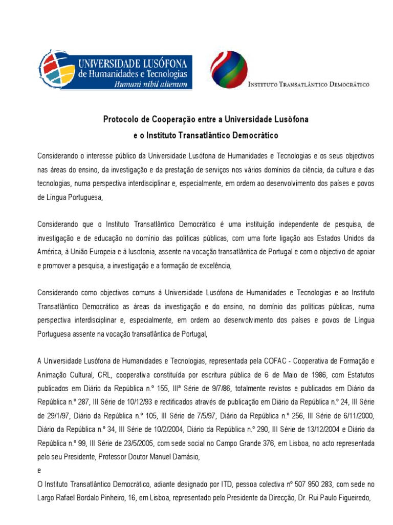 4) A Universidade Lusófona de Humanidades e Tecnologias cederá instalações para utilização do ITD. O regime