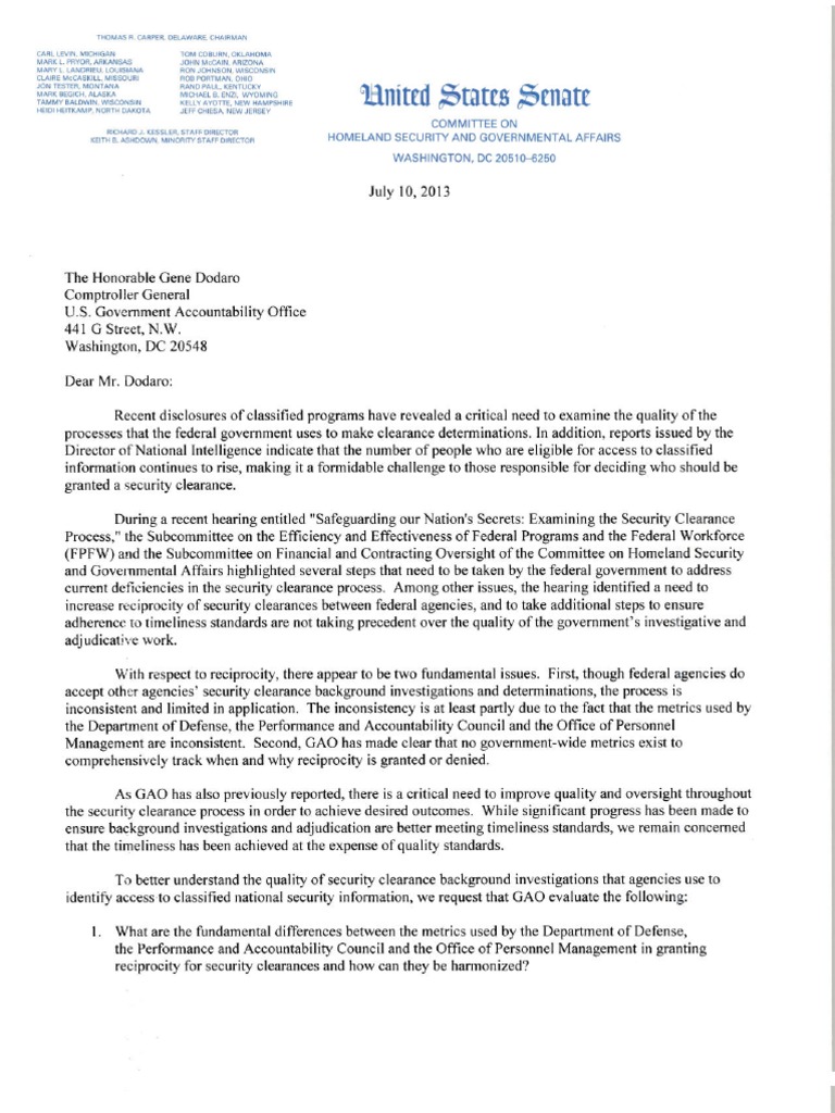 Tester's letter to GAO Comptroller General Gene Do...