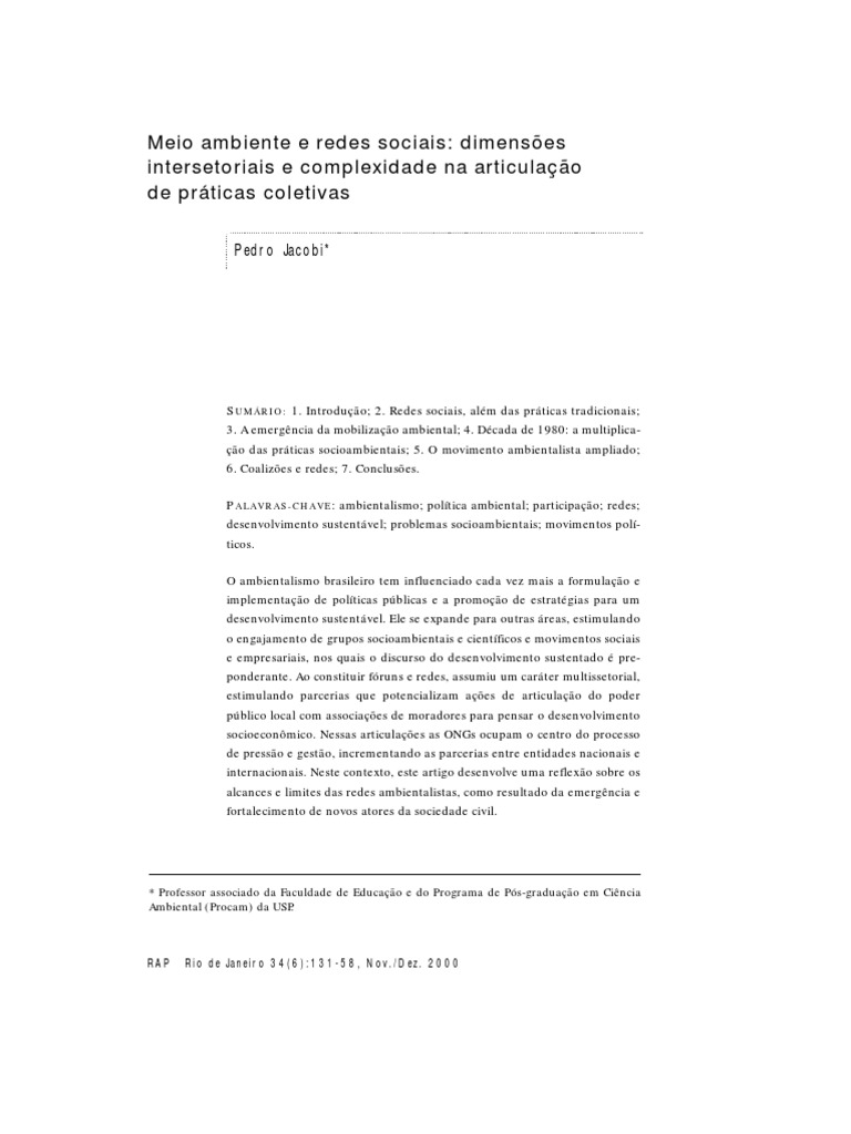 Meio ambiente e redes sociais: dimensões intersetoriais e complexidade na articulação de práticas coletivas