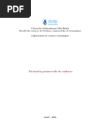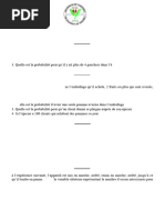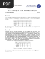 X Leffectif de lchantillon tant grand (suprieur 30), on peut considrer que n s suit une loi normale centre rduite. sera dans 95% des cas dans lintervalle Par consquent, lesprance de X [ x 1.96s/ n, x + 1.96s/ n], soit ici dans lintervalle [4.87, 4.99]. (complment : estimation par intervalle de conance de la variance : Si X suit une loi normale, on sait alors que (n 1)s2 / 2 suit une loi du 2 n 1 degrs de libert, donc 2 2 2 est avec une probabilit de 95% dans lintervalle [(n 1)s2 /c2 1 , (n 1)s /c2 ] pour 2 2 c2 59 . 342 et c 24 . 433 (lus dans la table du 40 degrs de libert, car le formulaire 1 2 ne donne pas la table 39 degrs de libert), soit 2 [0.0267, 0.0648]. Si on ne sait pas que X suit une loi normale, on ne peut rien dire...)