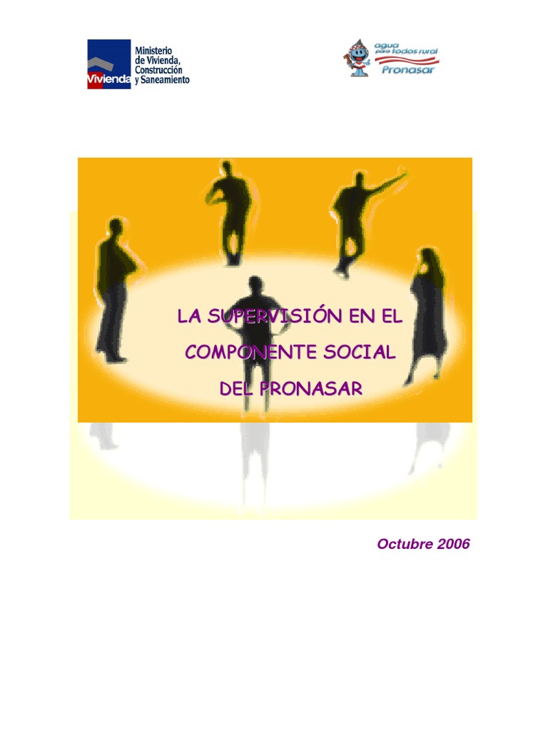 herramientas e instrumentos que complementariamente a aspectos desarrollados en otros documentos sobre la supervisión. el mismo que tiene a cargo la supervisión y el seguimiento del desarrollo que va haciendo del proyecto el OTS. se hace necesaria la supervisión de los aspectos constructivos de los servicios. sino también al fortalecimiento de las capacidades locales. PRONASAR se ha propuesto mejorar la salud y las condiciones de vida de la población rural del país. 4 . las inversiones se orientan no solo a la construcción de los sistemas. Por ello. la implementación del proyecto descansa a nivel local en un Operador Técnico Social OTS y un Operador Supervisor OS. siendo esta con más énfasis cuando se trata de la incorporación de aspectos sociales ligados al empoderamiento de la comunidad y la sostenibilidad de los servicios de agua y saneamiento. en la línea de los objetivos que se persigue en cada una de las fases del ciclo del proyecto. buscan ubicar el trabajo del OS.INTRODUCCIÓN En los últimos años la experiencia nos ha demostrado que la supervisión en los proyectos de agua y saneamiento ha venido siendo nula o escasa. en la Administración Operación y Mantenimiento de los servicios nos indican que en este tema hay mucho por hacer. mediante el acceso a servicios sostenibles de agua y saneamiento. deficiencias en los aspectos constructivos. en la cantidad y calidad conveniente. A continuación PRONASAR. orientaciones. las mismas que deben ser reforzadas por un intensivo seguimiento y supervisión que acompañe la ejecución de acciones que realiza el Operador Técnico Social (OTS). En el modelo de intervención del PRONASAR. Por tal motivo. Como ya se dijera los alcances que presentemos incorporados a la experiencia institucional que cada consultor trae hará que los beneficios y éxitos para la población sean los mayores. presenta los lineamientos.