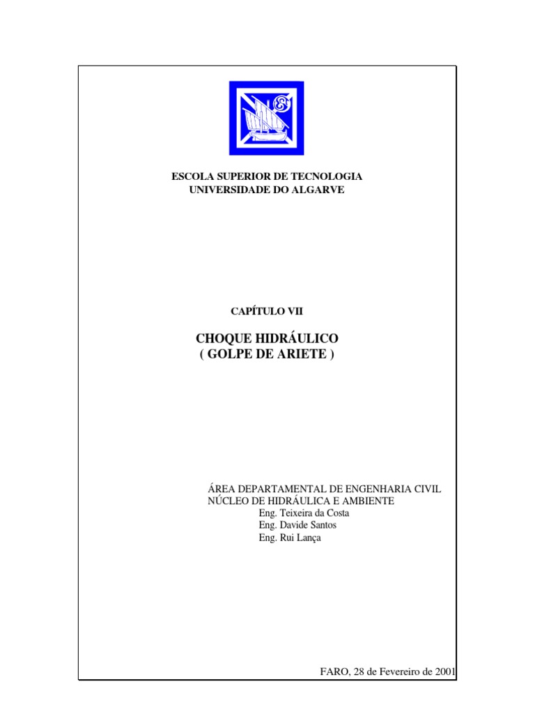 ESCOLA SUPERIOR DE TECNOLOGIA - NÚCLEO DE HIDRÁULICA E AMBIENTE