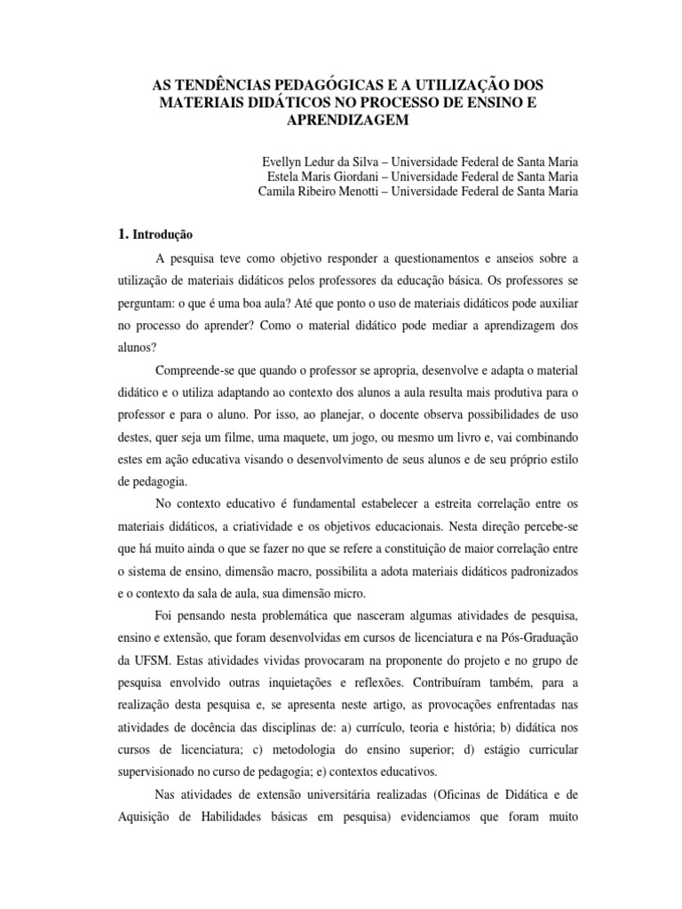 AS TENDÊNCIAS PEDAGÓGICAS E A UTILIZAÇÃO DOS MATERIAIS DIDÁTICOS NO PROCESSO DE ENSINO E APRENDIZAGEM