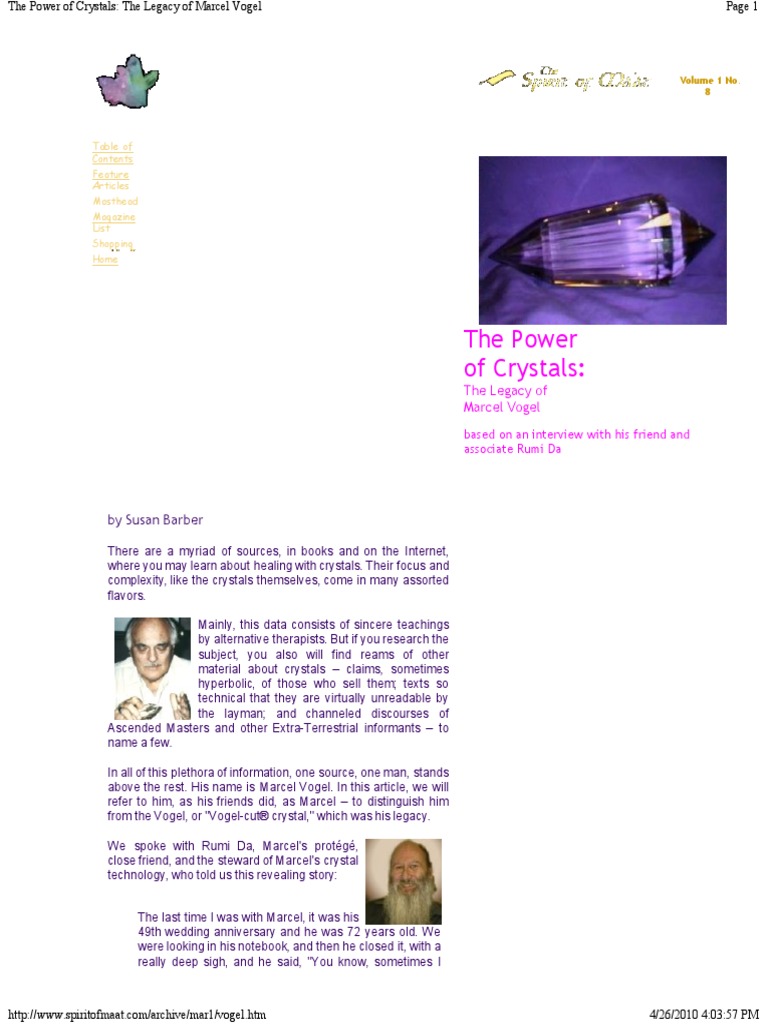The Power of Crystals: The Legacy of Marcel Vogel