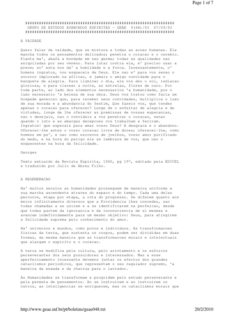 ################################################################# GRUPO DE ESTUDOS AVANCADOS ESPIRITAS - GEAE 9(48)/93 07/09/93 #################################################################