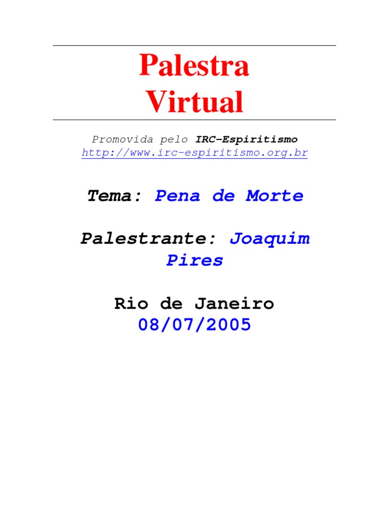 Moderador: "_Alves_" (nick: <_Moderador_>) "Médium digitador": "Joaquim Pires" (nick: <Joaquim_Pires>)