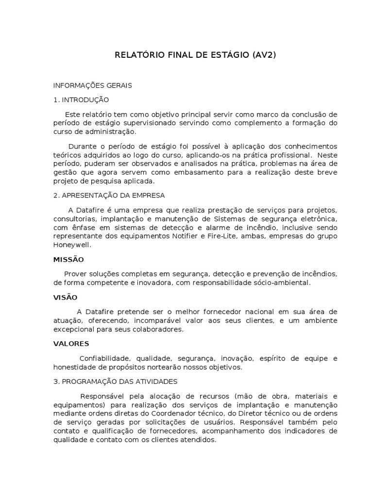 Este relatrio tem como objetivo principal servir como marco da concluso de
