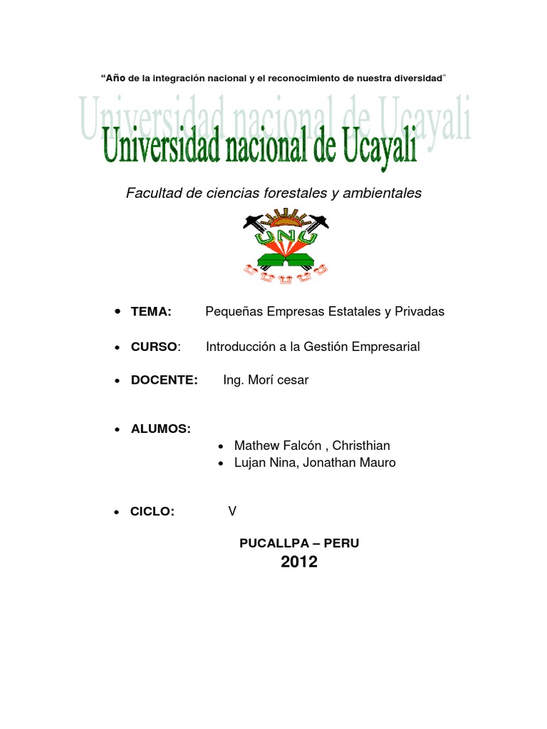Pequeñas Empresas Estatales y Privadas Introducción a la Gestión Empresarial Ing. Morí cesar