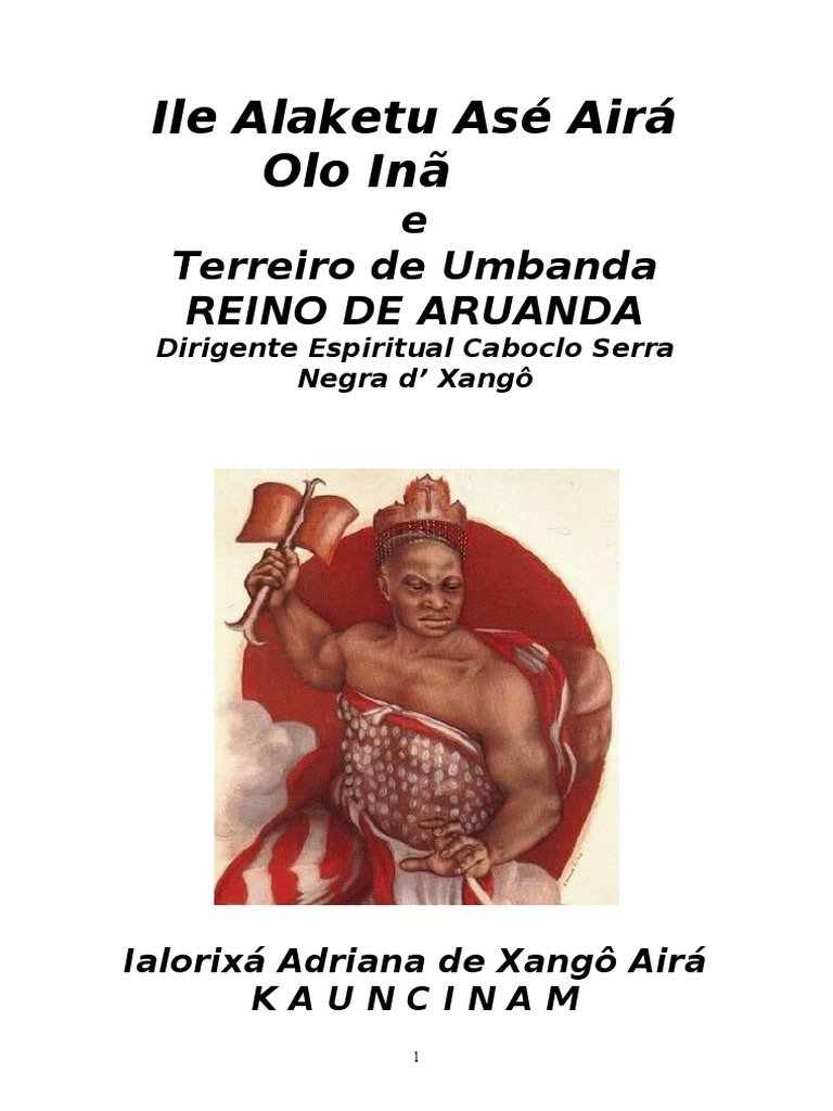 ;em Seu :ei das Er#as e AndaraE /!aburana ma!ou um bicho de pena /!aburana ma!ou um bicho de pena Ele no mora longe )ora den!ro da 0urema 4 bi TRABALHO A rio , rio , rio oi S dona A rio de So +rancisco 7 bis &uebra a cabaa espalha a semen!e ;odos os caboclos a%udando a inocen!e 7 bis O8 caboclo #em #er a sua aldeia, O8 caboclo #em #er a sua aldeia" Onde pia a cobra sabi gor%eia, Onde pia a cobra sabi gor%eia, 1es!imen!a de caboclo , samambaia, A samambaia, , samambaia, Saia caboclo no se a!rapalha, Saia do meio da samambaia" Arreia capangueiro Capangueiro da 0urema Arreia Capangueiro Capangueiro 0urem Nas ma!as (uem manda Os caboclos arriando Chama os caboclos da ma!a, A pra !rabalhar, bis" Se a ma!a , mui!o al!a, Caboclo #ai derrubar bis" Se!e caboclos, Se!e *lechas, se!e *lecheiros, +irma seu pon!o, Na cachoeira, &ue os caboclos #o descer, +irma seu pon!o, Sara# meu pai =ang3, &uem manda l nas ma!as, A Oxossi caador Gira Ox'ssi gira ele gira Na macaia Ox'ssi gira ele gira Na macaia Gira gira no meu !erreiro Gira gira na minha banda SAUDAO DE CABOCLO A ma!a es!a#a escura -m an%o iluminou No cen!ro da ma!a #irgem +oi seu Ox'ssi (uem chegou )as ele , o rei ele o rei ele o rei