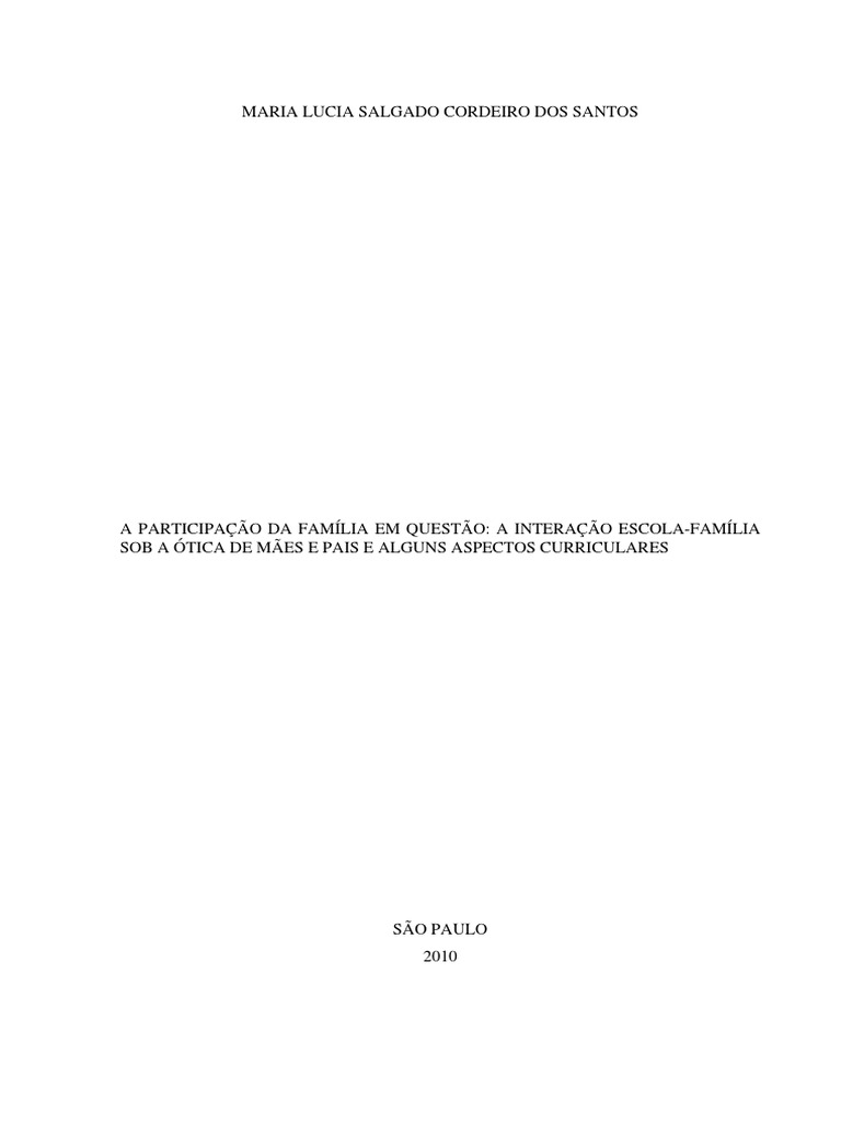 A PARTICIPAÇÃO DA FAMÍLIA EM QUESTÃO: A INTERAÇÃO ESCOLA-FAMÍLIA SOB A ÓTICA DE MÃES E PAIS E ALGUNS ASPECTOS CURRICULARES