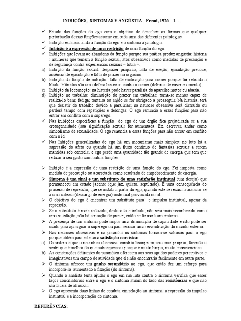 Inibição está associada à função do ego e o sintoma à patologia.
