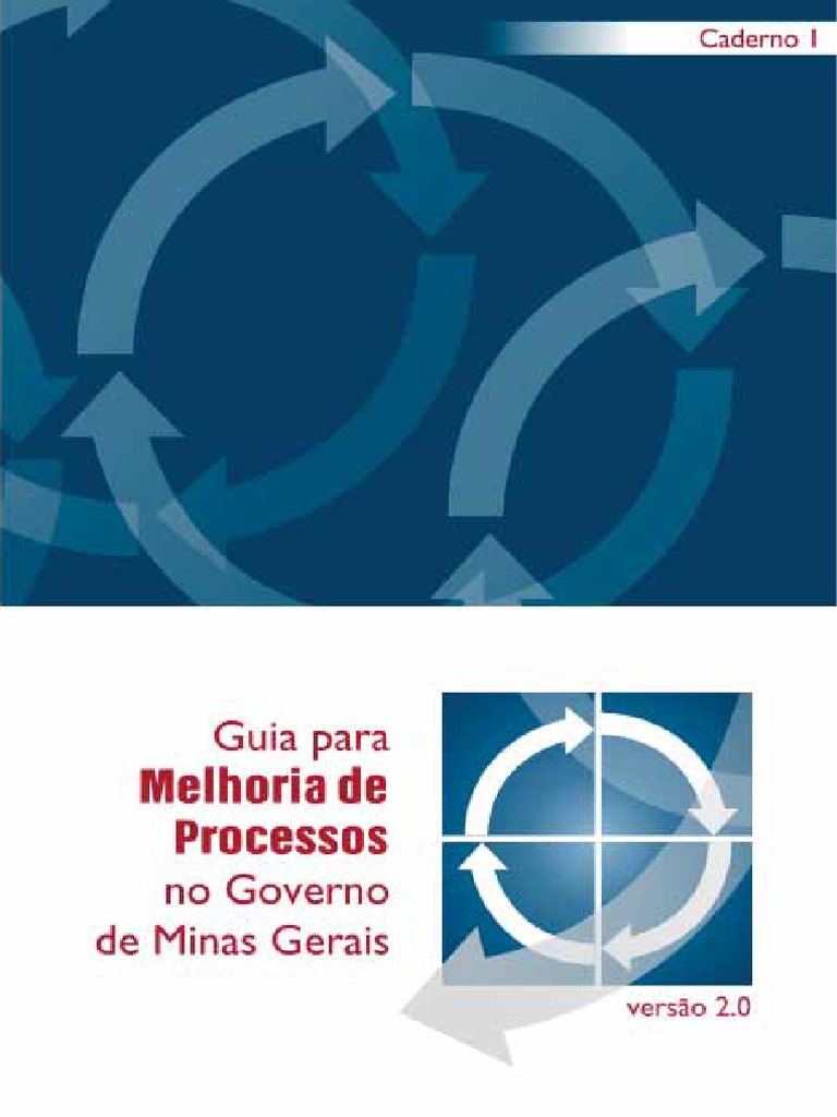 percepo dos gestores e executores envolvidos, mas tambm por meio da construo de um diagnstico analtico e tcnico, construdo com base em avaliaes estruturadas e com menor chance de desvios de percepo. O aperfeioamento que se busca com tais intervenes pode se dar de vrias maneiras (definio de novos fluxos de atividades, novas metas de desempenho, insero de novas tecnologias, entre outros) e ocorrer em diversos perodos ou rodadas de melhoria, sempre que se perceba a necessidade de introduzir melhorias no processo. Assim, o trabalho aqui proposto identifica o modo de funcionamento do processo de forma detalhada, seus principais gargalos e carncias e possibilita o planejamento da implantao de aes que aprimorem seu desempenho e resultados. Todos esses fatores corroboram, de modo geral, para um melhor funcionamento da organizao e elevam a qualidade dos produtos e servios que a mesma oferece aos seus clientes. Dessa forma, esta seo buscou conscientizar o leitor sobre o fato de que a gesto de processos vai alm da metodologia para projetos de melhoria de processos aqui apresentada. Portanto, para uma efetiva gesto de processos, espera-se que o leitor, antes de aplicar a metodologia detalhada a seguir, tenha j compreendido seu negcio, identificado e priorizado o(s) processo(s) que possa(m) trazer maiores resultados ao seu rgo/entidade, bem como se preparado para mensurar e acompanhar, posteriormente, a execuo do processo melhorado. A partir de agora, iremos expor a metodologia para realizao de projetos de melhoria de processos, bem como os instrumentos que auxiliaro nesse trabalho, visando estabelecer indicadores adequados e levantar pontos de melhoria para o desempenho do processo.