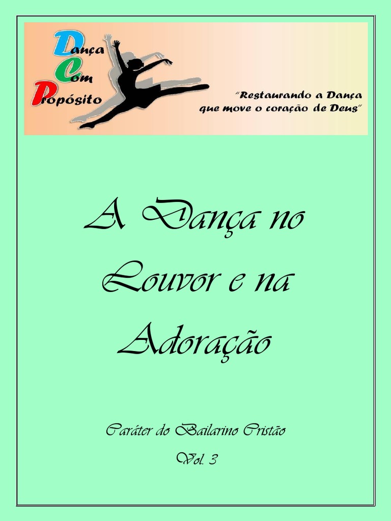 Neste terceiro volume vamos tratar sobre um assunto muito importante no s na vida do bailarino, como tambm para todo cristo que tem um ministrio, seja ele qual for: o carter. Nosso objetivo mostrar trs tipos de sentimentos que prejudicam a vida do ministro: a inveja, cimes e o orgulho. Orientamos a vocs, que ao ler, se identificou com algum assunto tratado, permita-se ser transformado pelo Esprito Santo de Deus. Esperamos que essa apostila seja muito til para na vida de todos que adquirirem esse material. Um abrao e bom estudo!