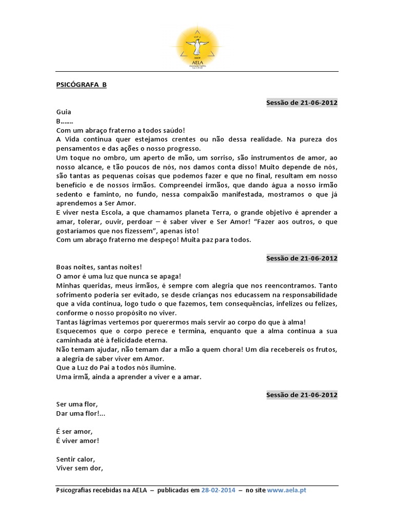 Psicografias recebidas na AELA publicadas em 28-02-2014 no site www.aela.pt