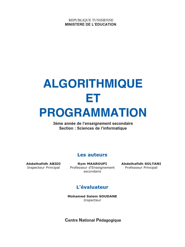 Chapitre 1 Les structures de donnes et les structures simples 7 Les structures algorithmiques de contrle 50 Les sous programmes Les algorithmes de tri et de recherche Les algorithmes rcurrents Chapitre 2 Chapitre 3