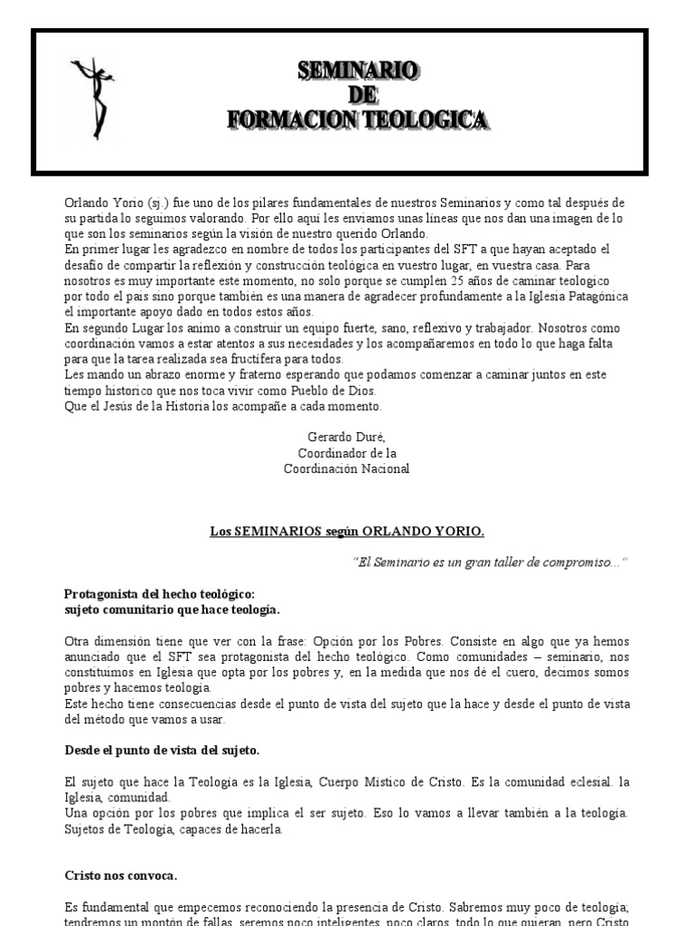anunciado que el SFT sea protagonista del hecho teológico. Como comunidades – seminario, nos