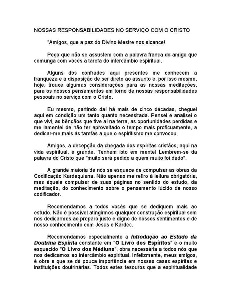 comunga com vocês a tarefa do intercâmbio espiritual.