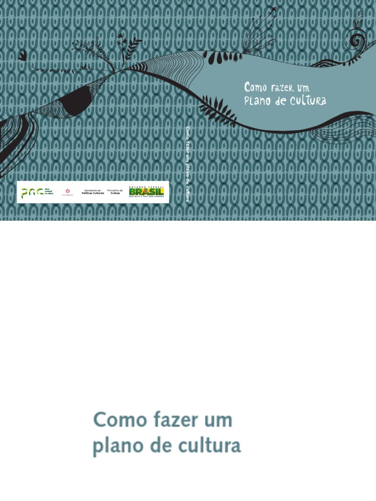 Sobre esta publicação 6 Plano de cultura: componente para o desenvolvimento 8 Planos de cultura: do sonho para o real 12 Visão geral do processo de criação do plano de cultura 20 Como estamos? Qual a situação atual da cultura? 30 Sensibilização e participação democrática 42 Onde queremos chegar? O que se deseja mudar ou desenvolver na cultura do município? 48 Redação final e validação do plano 60 Como gerir os avanços? 68 Lista das metas do Plano Nacional de Cultura 76 Plano Nacional de Cultura: perguntas frequentes, histórico e próximos passos 81