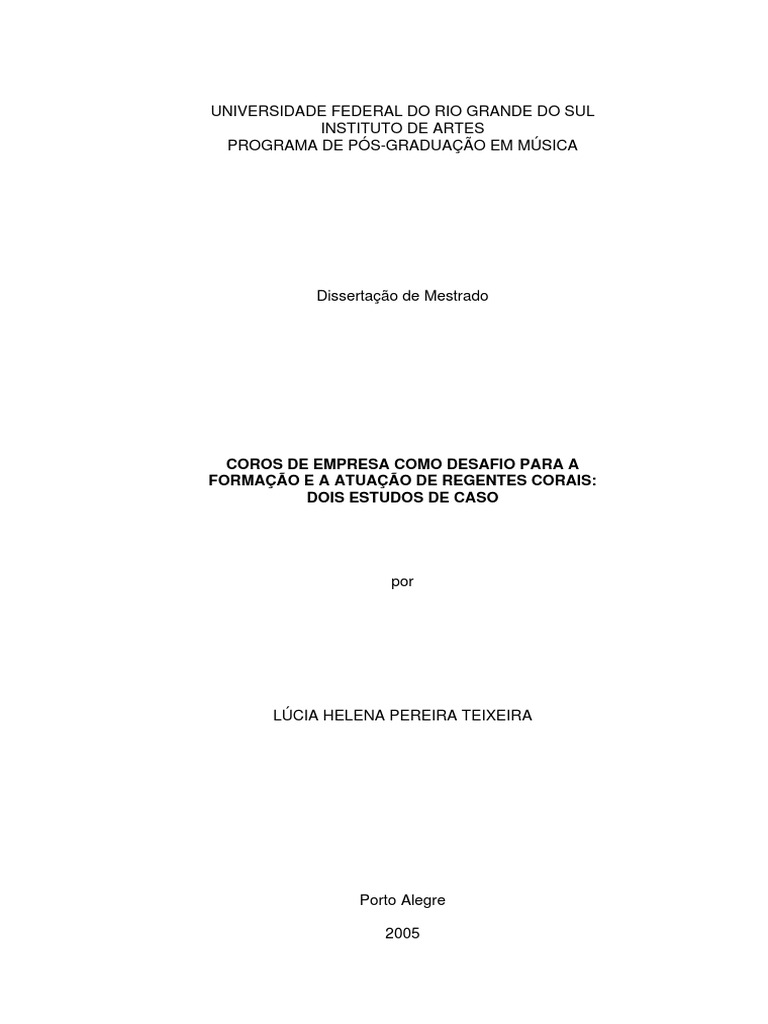 corais junto a coros de empresa na cidade de Porto Alegre RS. A investigao