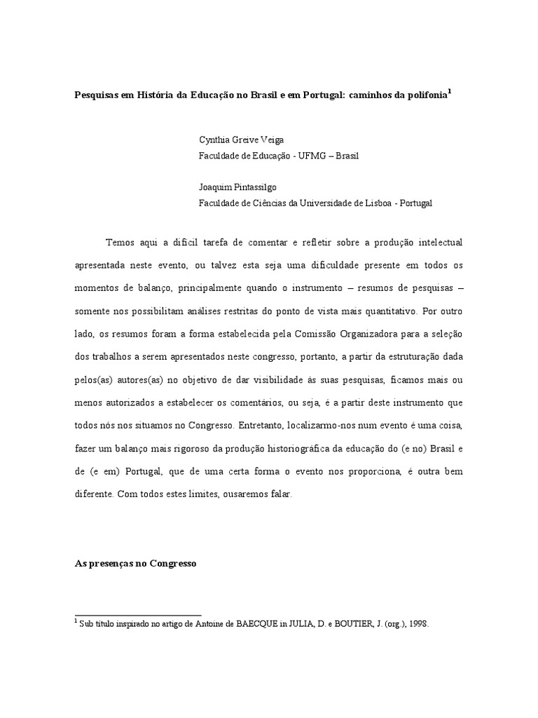 Congresso Luso-Brasileiro de História da Educação. In: SOUSA, C. P. de e CATANI, D.
