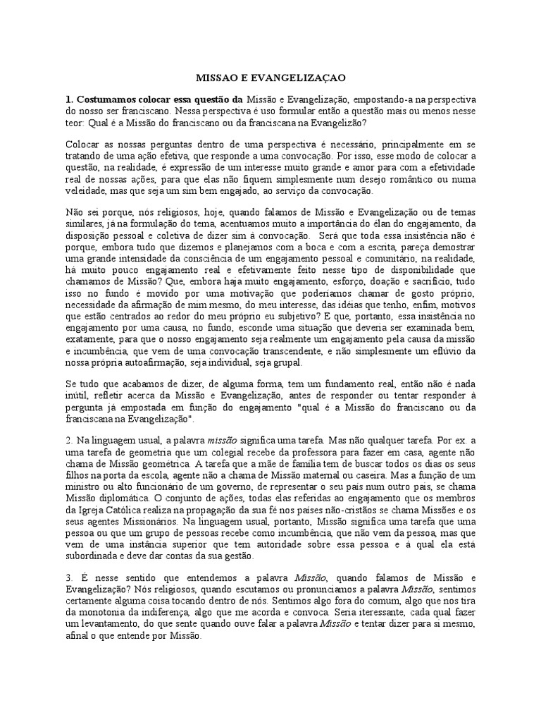pergunta &" empostada em funo do enga&amento 0qual a Misso do franciscano ou da