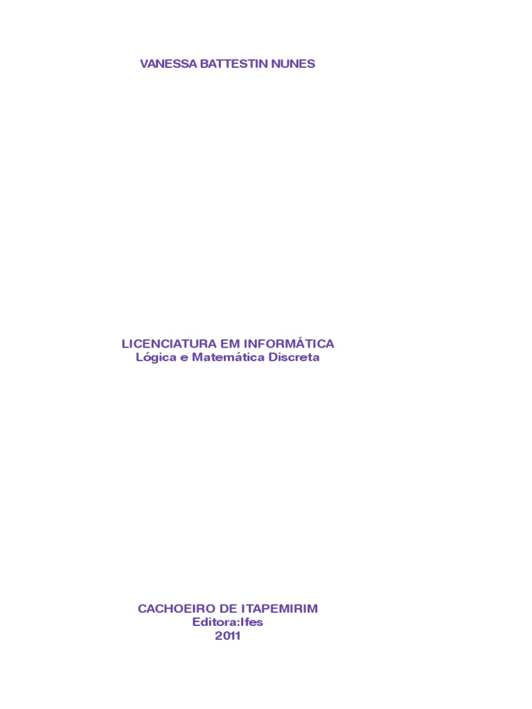 Lógica e matemática discreta. / Vanessa Battestin Nunes. – Serra: Ifes, 2009. 95 p. : il.