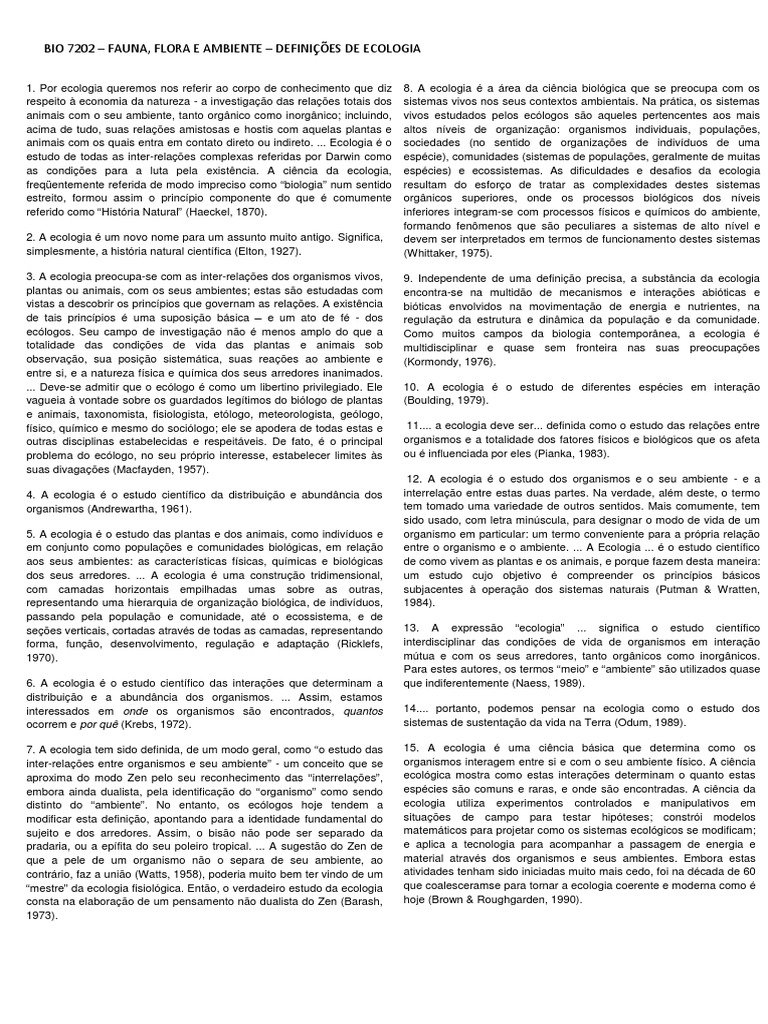 11.... a ecologia deve ser... definida como o estudo das relações entre