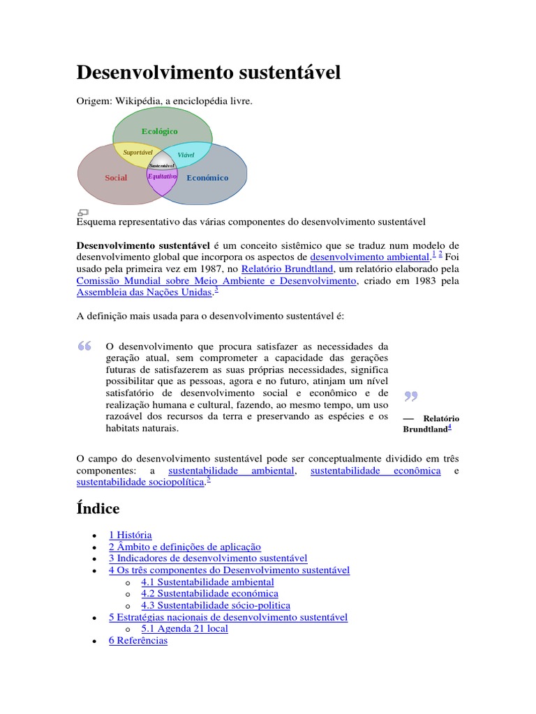 Meio Ambiente e Desenvolvimento em 1987, onde foi pela primeira vez formalizado o