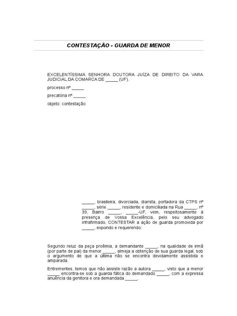 infrafirmado, CONTESTAR a ação de guarda promovida por