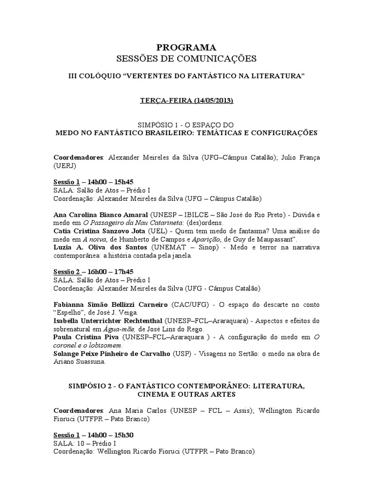 III COLQUIO VERTENTES DO FANTSTICO NA LITERATURA