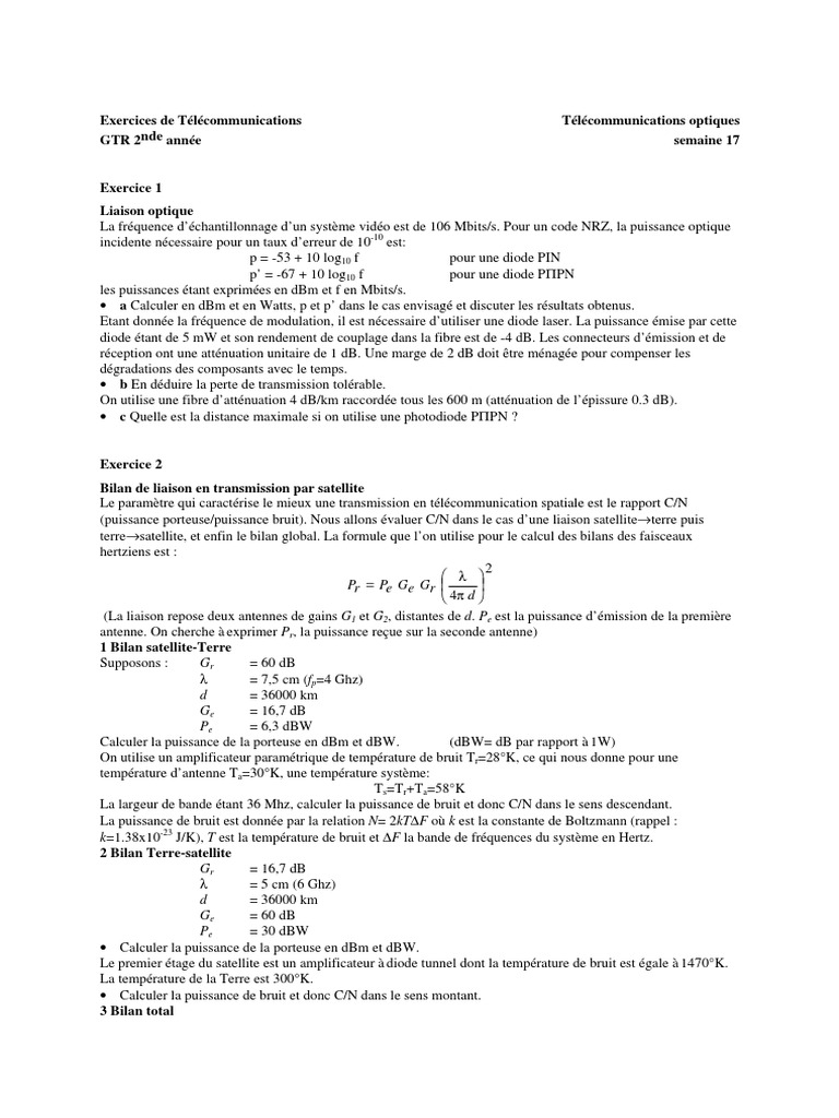 Exercices de Tlcommunications Tlcommunications optiques