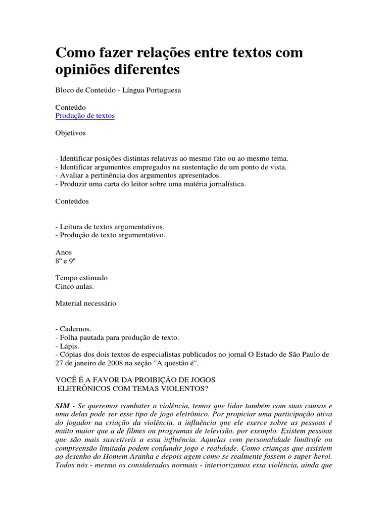 relao proibio de certos jogos eletrnicos, os dois textos apresentam posies