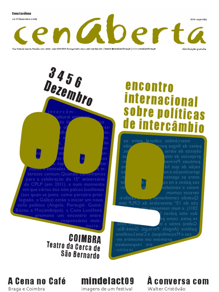 Rua António José de Almeida n.º 2, 3000 - 040 COIMBRA Portugal telf. e fax (+351) 239 836 679 | teatro@cenalusofona.pt | www.cenalusofona.pt distribuição gratuita