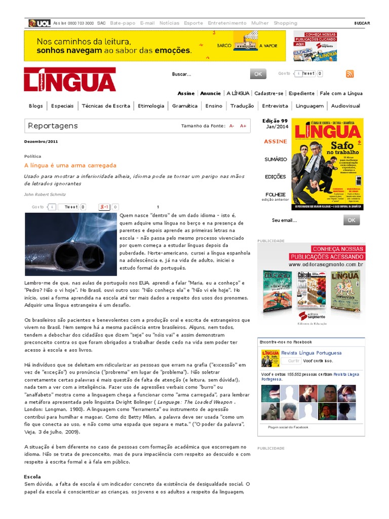 TAMBÉM EM REVISTA LÍNGUA PORTUGUESA