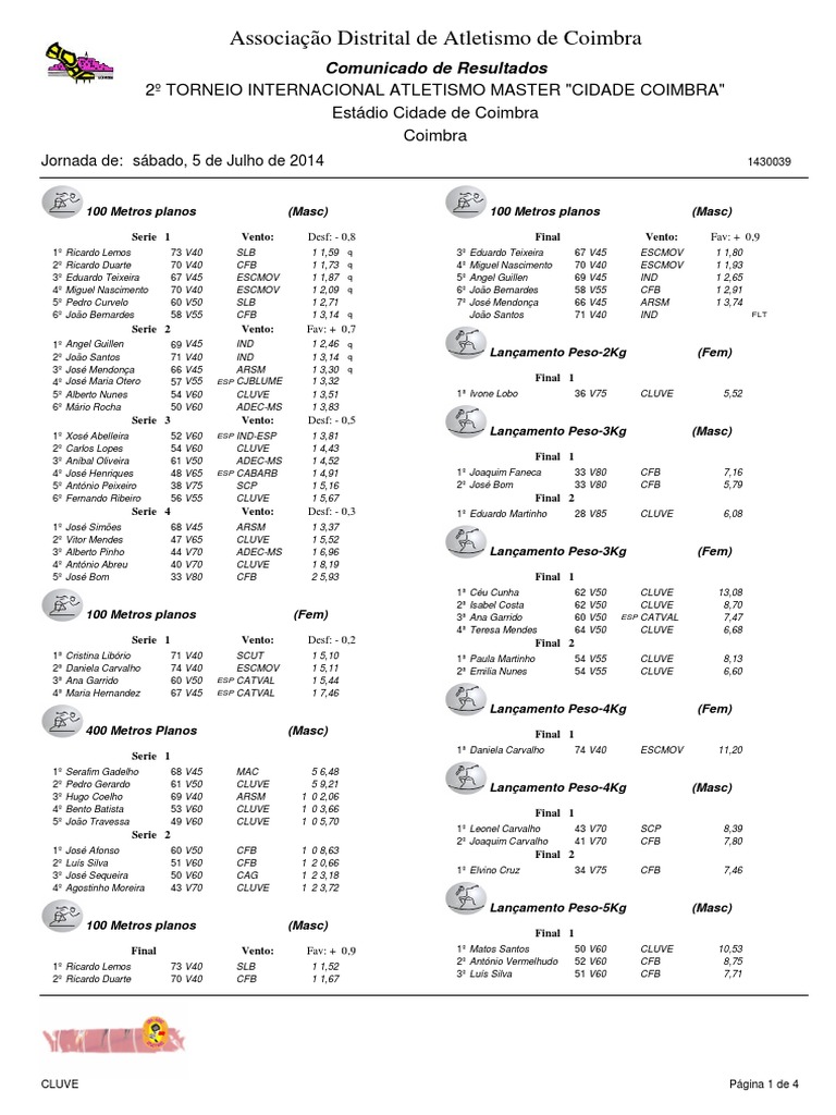 2 TORNEIO INTERNACIONAL ATLETISMO MASTER "CIDADE COIMBRA"