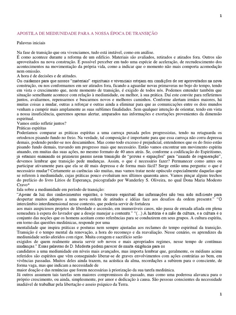 APOSTILA DE MEDIUNIDADE PARA A NOSSA POCA DE TRANSIO