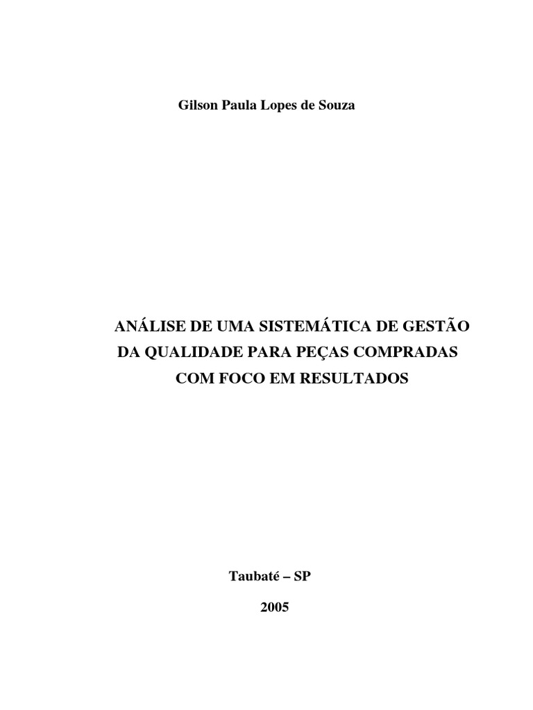 SOUZA, Gilson Paula Lopes de. Anlise de uma sistemtica de gesto da qualidade