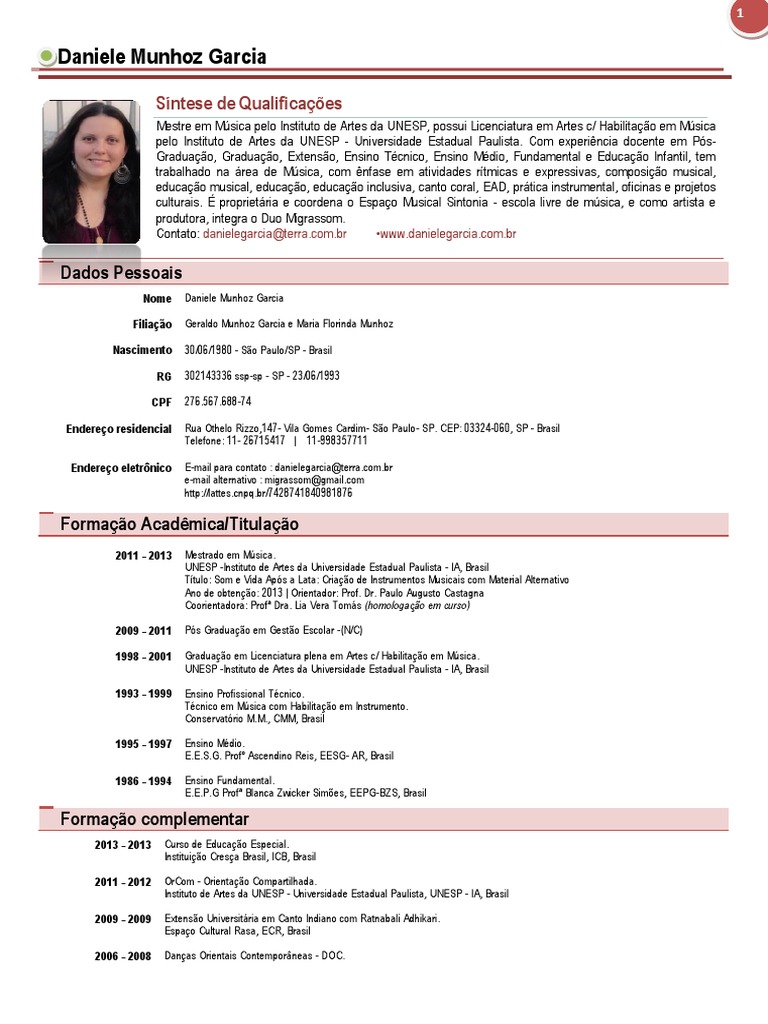 1998 - 2001 Graduao em Licenciatura plena em Artes c/ Habilitao em Msica.
