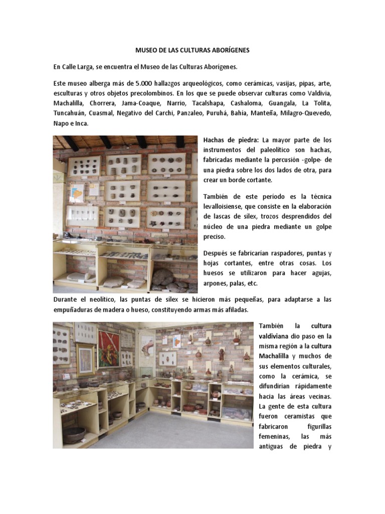 En Calle Larga, se encuentra el Museo de las Culturas Aborígenes.