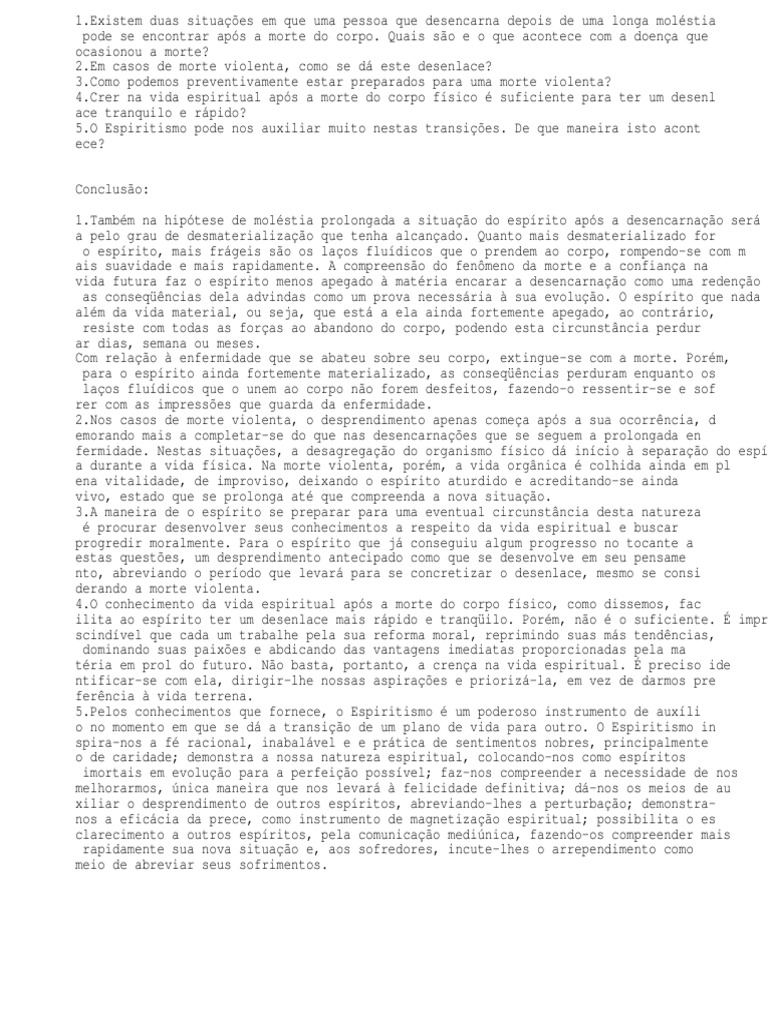 1.Tambm na hiptese de molstia prolongada a situao do esprito aps a desencarnao ser d