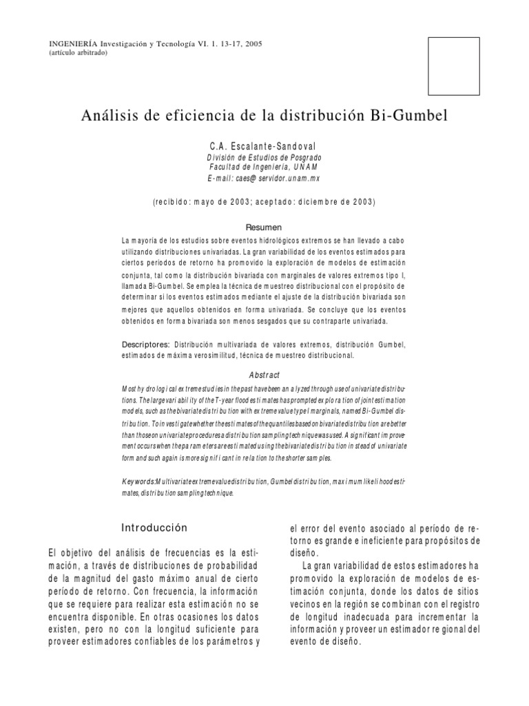 llamada Bi-Gumbel. Se emplea la técnica de muestreo distribucional con el propósito de