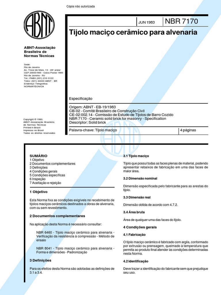 NBR 7170 - Ceramic solid brick for masonry - Specification