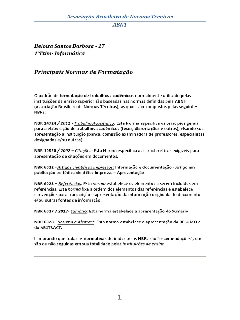 Principais Normas de Formatao