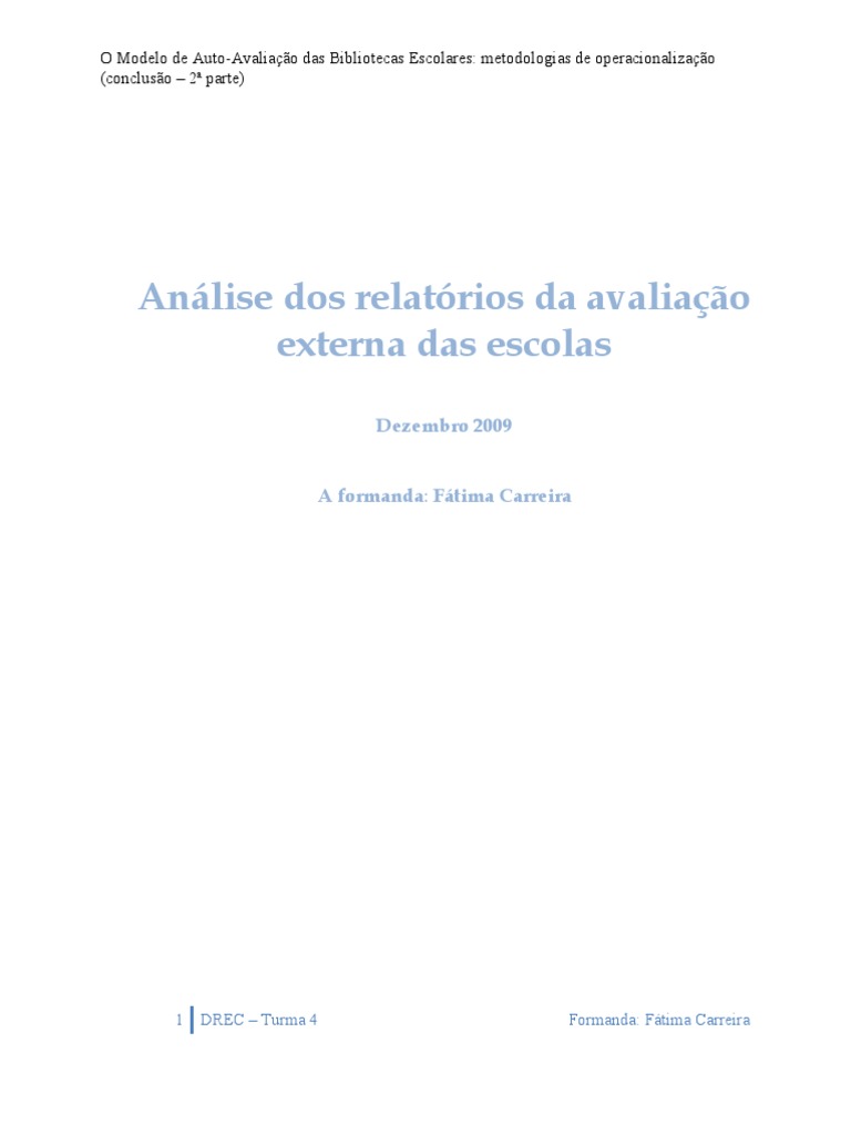 Para a reflexão deste trabalho, seleccionei os relatórios de avaliação externa de três